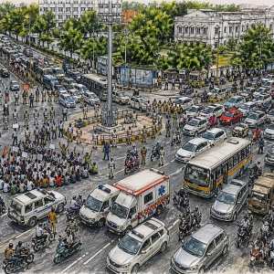 Retired officer’s minor son rams ambulance, had security guard with him; patient dead